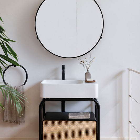 # LAVABO FREESTANDING TONDO da 53cm ITACA- CIELO eleganza minimale con scarico a parete