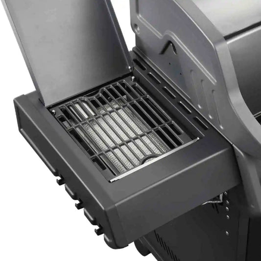 Barbecue con carrello BBQ DISCOVERY 1200E 3 fuochi - IL BRACERE griglia e piastra in ghisa, acciaio inox, fornello laterale 4,2 kW, potenza totale 16,7 kW