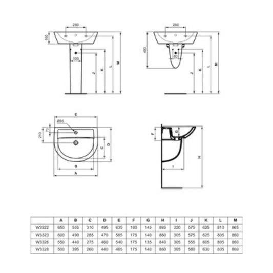 IDEAL STANDARD I.LIFE A LAVABO BIANCO da 650mm con foro centrale per rubinetteria