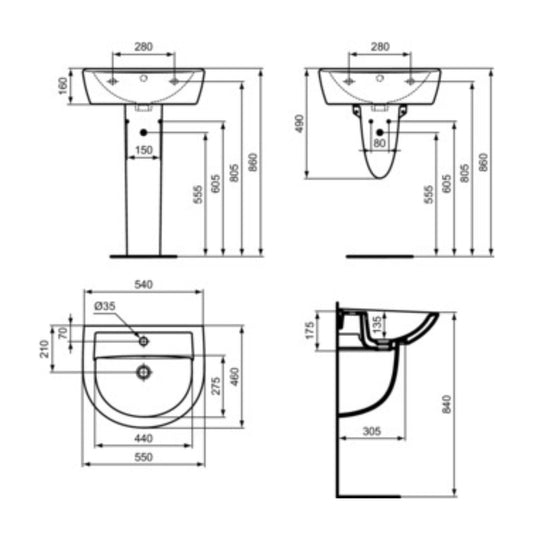IDEAL STANDARD EUROVIT LAVABO BIANCO 550x460mm lavandino in ceramica