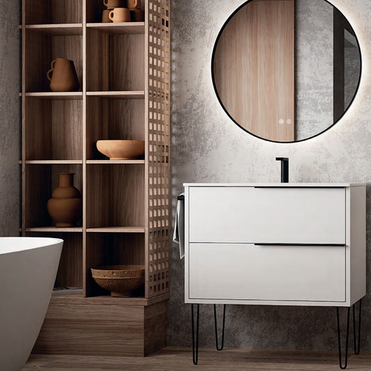 # MOBILE SOSPESO F4 LIKE LACCATO BIANCO OPACO 80Cm - NOFER mobile bagno con 2 cassetti