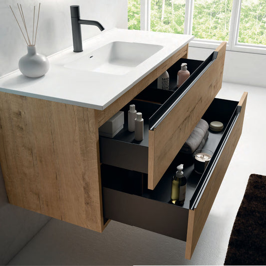 # MOBILE SOSPESO CONTRACT GLOW 100Cm - NOFER mobile da bagno con 2 cassetti