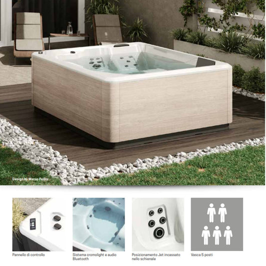 Le minipiscine per terrazzi sono progettate per offrire un comfort superiore in spazi ridotti: disponibili in forme quadrate, rotonde o rettangolari, presentano sedute ergonomiche, getti idromassaggio direzionabili, luci LED integrate, pannelli digitali di controllo e, nei modelli più evoluti, anche connessione Wi-Fi e sistemi audio Bluetooth per creare un ambiente completamente personalizzato. I materiali utilizzati per la vasca interna sono generalmente acrilici ad alta resistenza, igienici e piacevoli al tatto, mentre le coperture esterne variano dal legno composito alla vetroresina, fino a pannelli tecnici con funzione di isolamento termico.
