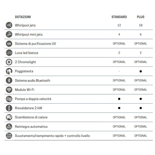 Per individuare la minipiscina da esterno perfetta per il tuo terrazzo, bisogna partire dalla destinazione d’uso. Le esigenze variano: c’è chi cerca un’oasi di relax per due persone, chi desidera uno spazio wellness da condividere con la famiglia o gli amici, e chi punta tutto sulla performance tecnologica. In base a questi obiettivi, il nostro team seleziona soluzioni adatte sia a un uso estivo sia a un impiego tutto l’anno, grazie alla coibentazione termica avanzata, al sistema di riscaldamento integrato e alla gestione intelligente tramite app. Tra gli optional richiesti ci sono spesso la cromoterapia, l’aromaterapia, la purificazione UV, i sistemi touch screen e le coperture termiche automatizzate, tutti elementi che migliorano il comfort e riducono i consumi.
