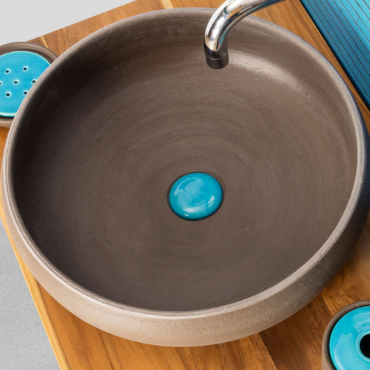 LAVABO INDEX FEEL in argilla refrattaria tornita a mano - CIPÍ terre scure, finitura artigianale 100% Made in Italy