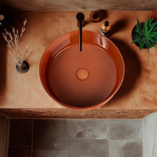 LAVABO INDEX RED IN TERRACOTTA - CIPÍ da appoggio in argilla refrattaria, artigianato Made in Italy
