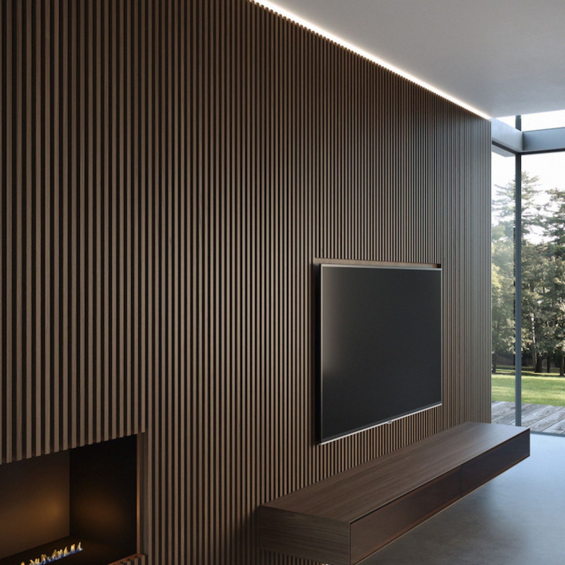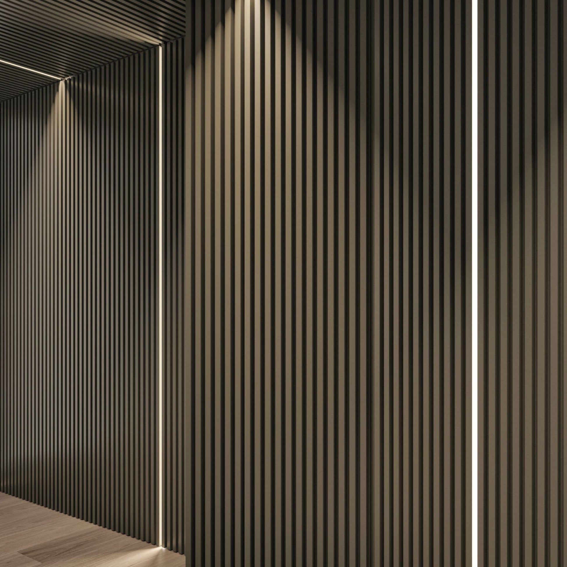 Non si tratta solo di pannelli per rivestire le pareti, ma di componenti stilistiche che giocano con luce e profondità grazie alle doghe verticali, creando effetti dinamici e raffinati.