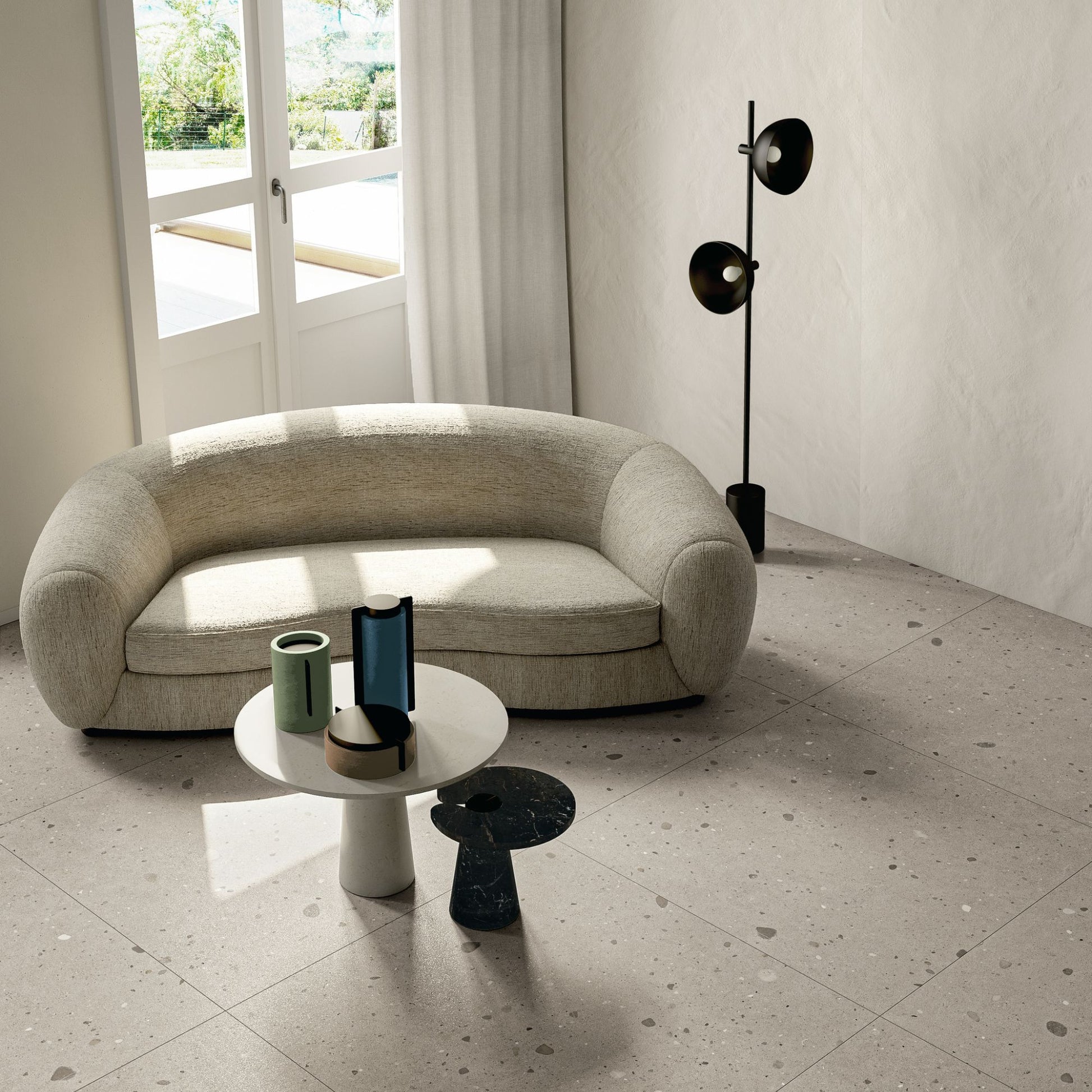 Superficie materica e contemporanea ispirata al cemento e alla pietra naturale; texture irregolare con forte carattere e profondità visiva; decori geometrici tono su tono per pattern dinamici; ampia gamma di colori caldi e freddi, perfettamente abbinabili; grandi formati e spessori sottili per continuità estetica; ideale per pavimenti e rivestimenti interni dal design moderno e minimalista; superficie morbida e piacevole al tatto; facile manutenzione e grande durevolezza.