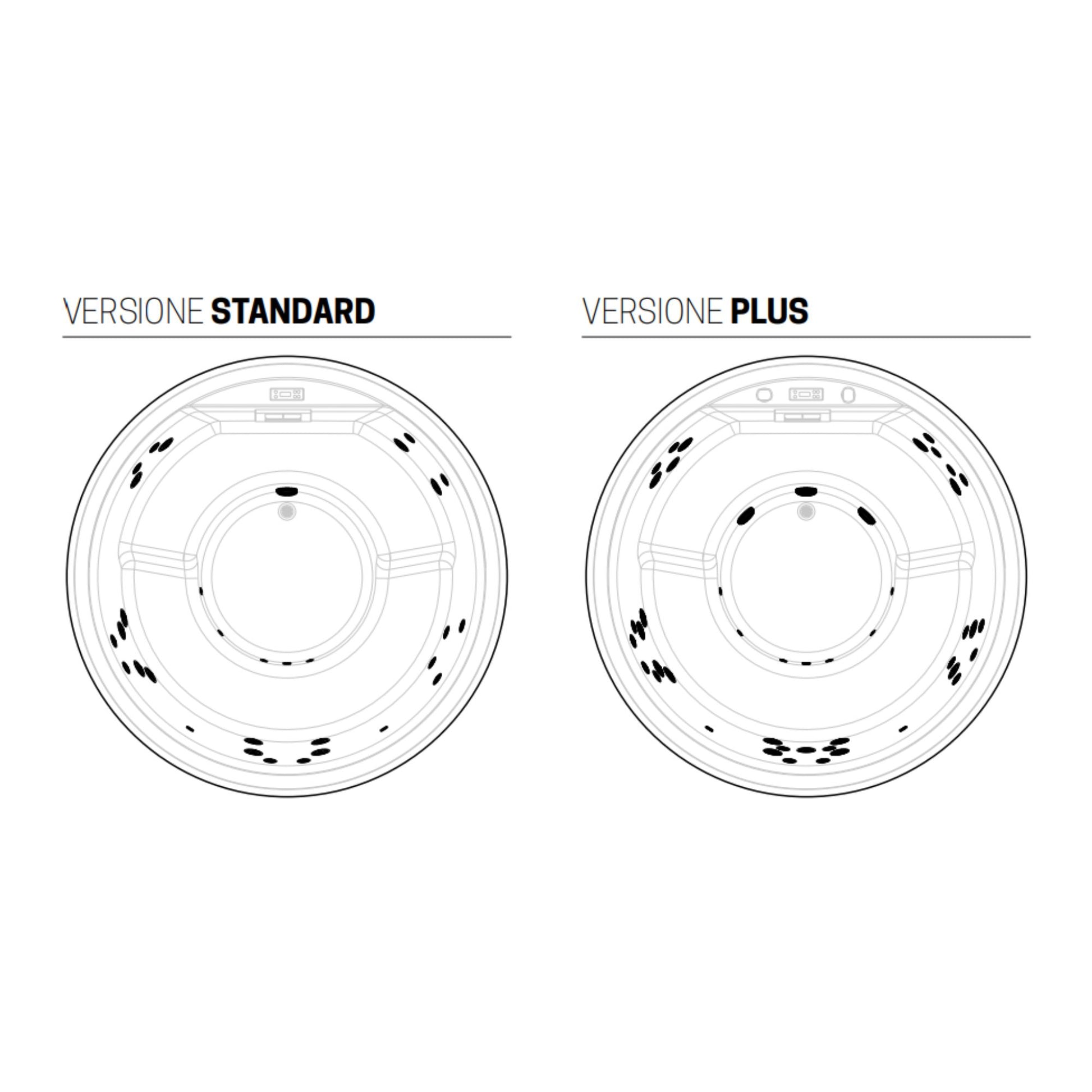 (4 Whirlpool mini jets, 24 Whirlpool jets, 4 luci LED, pompa doppia velocità, regolazione aria, riscaldatore 3 kW)