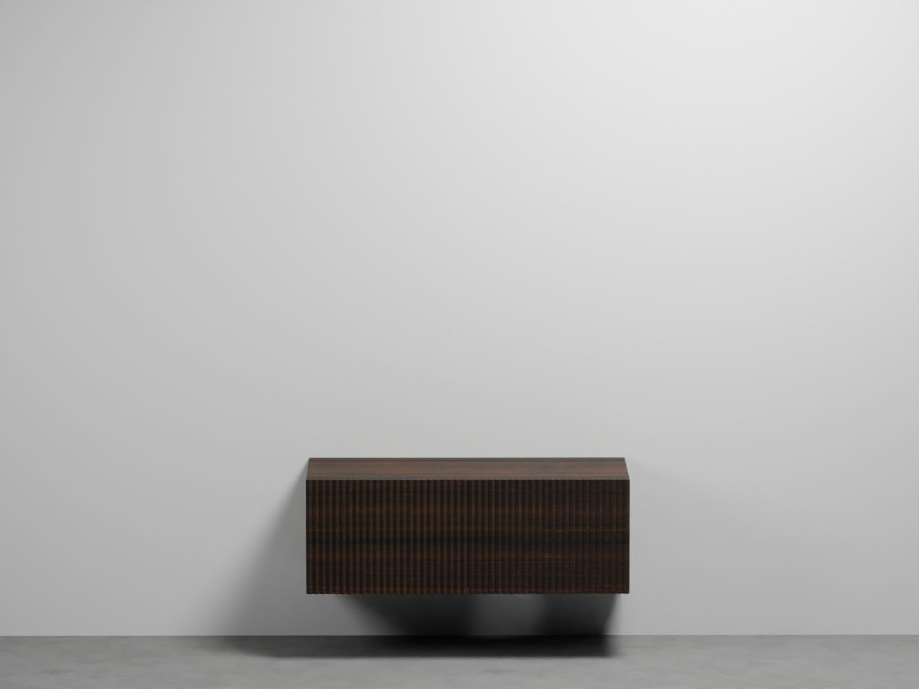 Ciò che rende questo mobile un pezzo d'arredo davvero distintivo è il suo frontale cassetti in listelli di legno massello, una scelta di design che conferisce profondità visiva e una texture ricercata. La specifica "senza fori" sul frontale cassetti offre un'estetica pulita e minimalista, permettendo al cliente la massima personalizzazione nella scelta dei sistemi di apertura, come push-pull, oppure di maniglie su misura, integrandosi perfettamente con qualsiasi stile d'arredo. La collezione Delfo si distingue per l'eleganza delle sue linee strutturate, che si fondono armoniosamente con forme morbide e innovative, creando un equilibrio visivo unico.