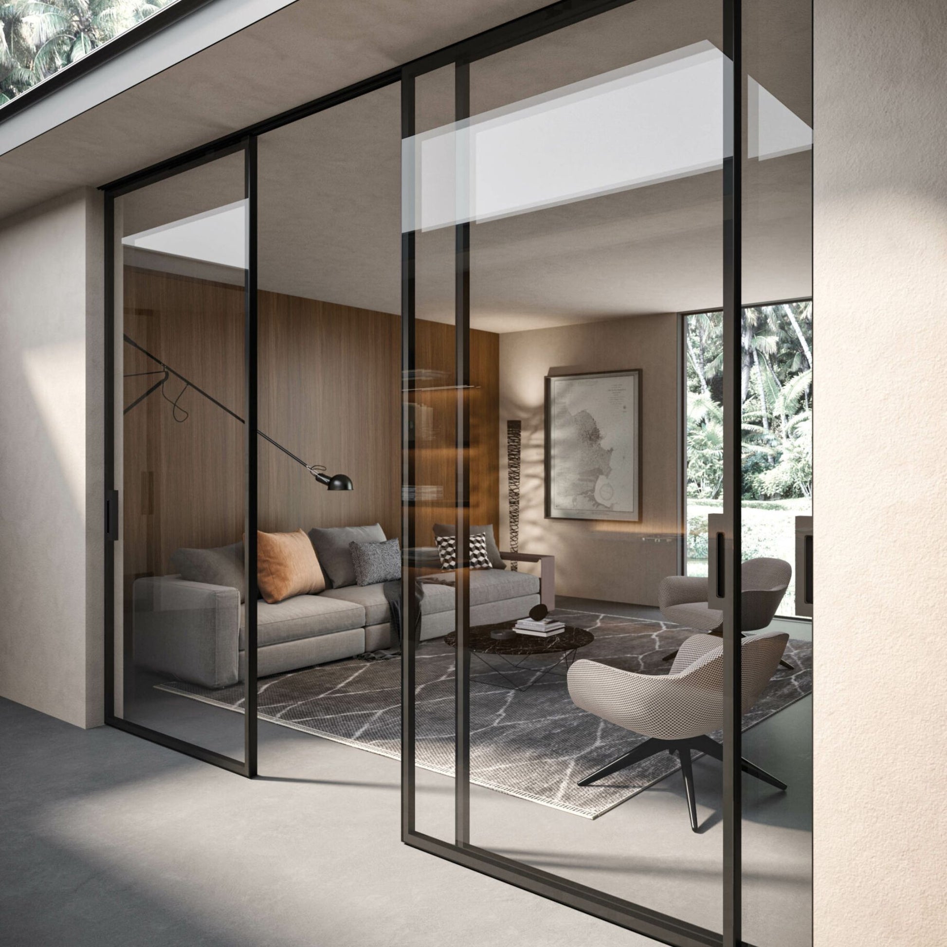 Le porte Levia, firmate da Gianluca Santambrogio, rappresentano una soluzione di design perfetta per arredare la casa contemporanea. La collezione si distingue per la varietà di configurazioni disponibili – battenti, scorrevoli e a scomparsa – tutte accomunate da un doppio pannello e da un profilo in alluminio minimale, capace di coniugare funzionalità ed estetica.