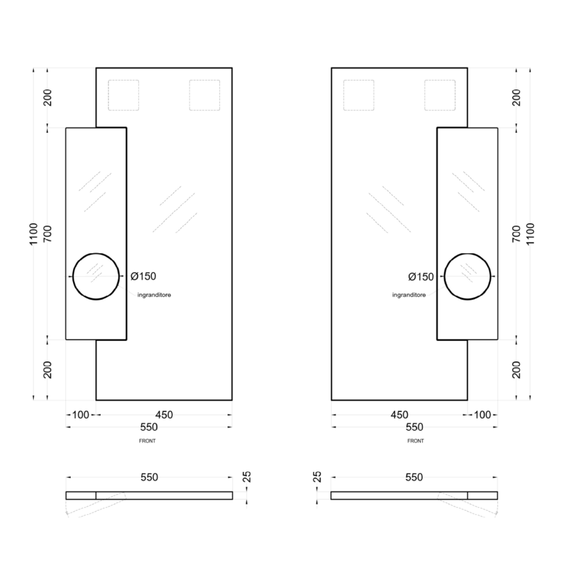 Disponibile in versione destra o sinistra, integra uno specchio ingranditore per una funzionalità avanzata. Le linee essenziali e la struttura sottile lo rendono perfetto per ambienti moderni, minimalisti o di design. Facile da installare, è indicato per bagni residenziali e contract.